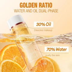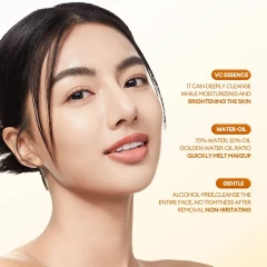 This is a water-oil dual-phase makeup remover suitable for the entire face. Its golden water-to-oil ratio is 70%:30%. It uses oil to dissolve makeup and water to purify the skin. Shake well and apply to easily remove stubborn makeup. Cleaner than makeup remover and more refreshing than makeup remover oil; Specially added vitamin C essence, nourishing makeup and remover in one, moisturizing and soothing, brightening skin tone while removing makeup; No alcohol added, gentle and non-irritating, no tightness after removal, Moisturize and care for skin.