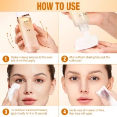 Step1 Use the shaken makeup remover to fully soak the cotton pad and gently wipe the face to remove makeup.