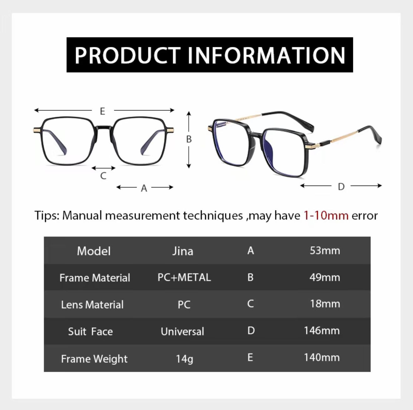 | Black/Gold Frame | Photochromic 0 (No Grade) | 500260 | 1 | |||||