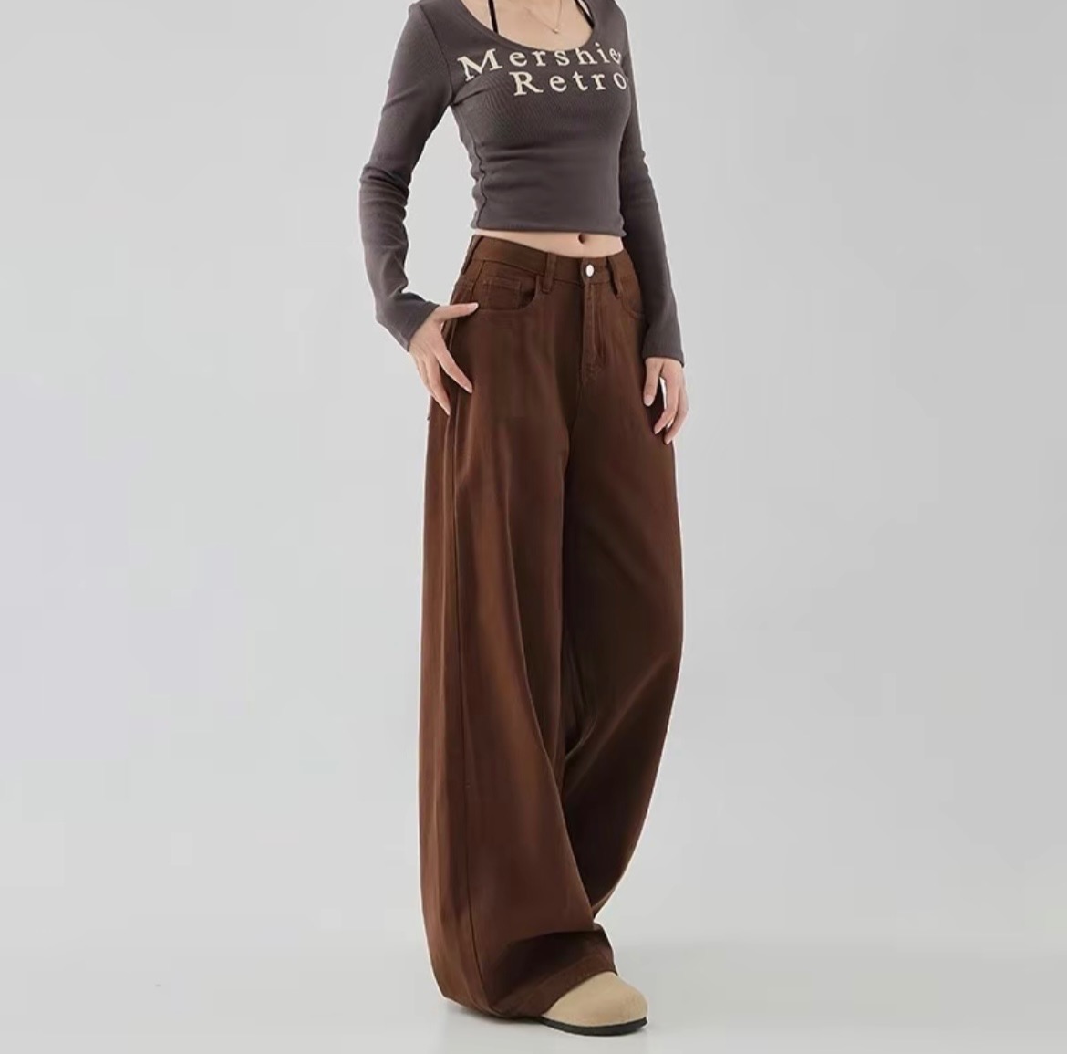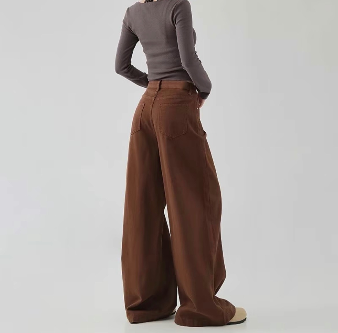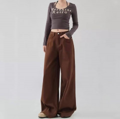 [BKK][PEG][255-350-0]Women's wide-leg brown jeans – new, high-waisted, loose fit, and versatile (BKK20)