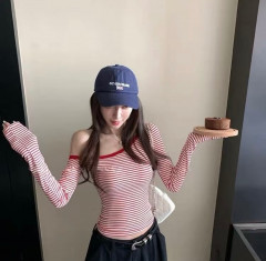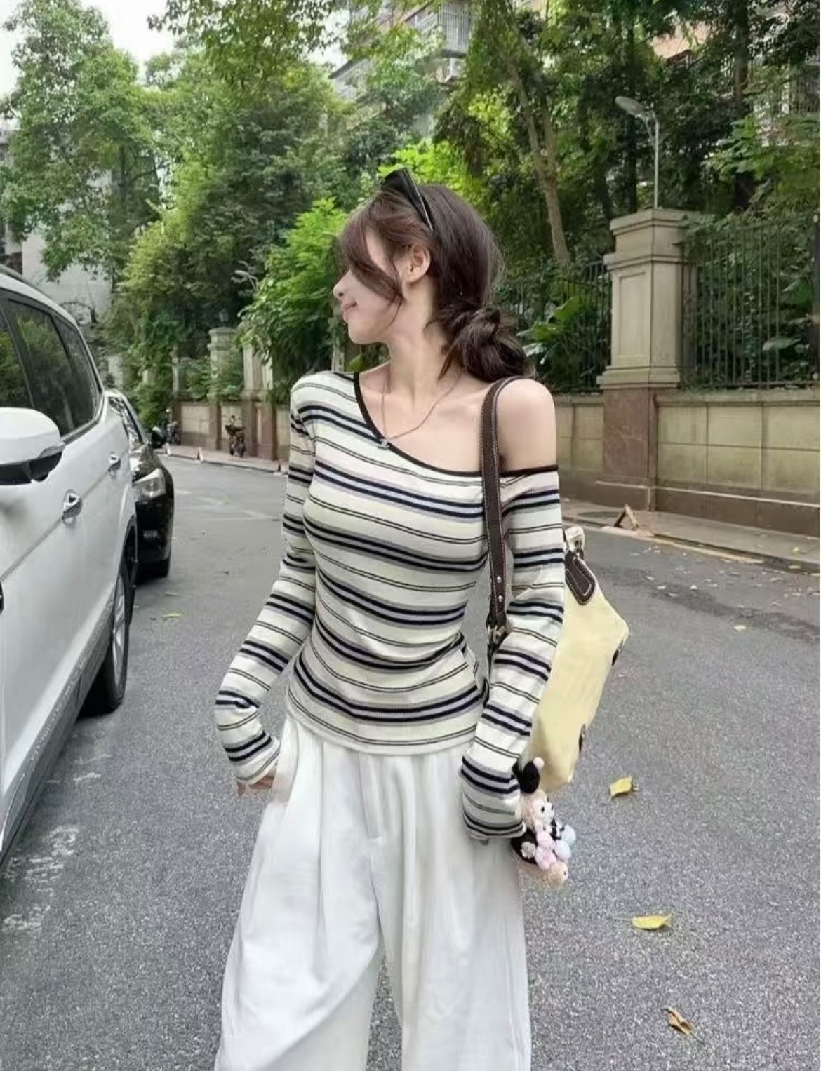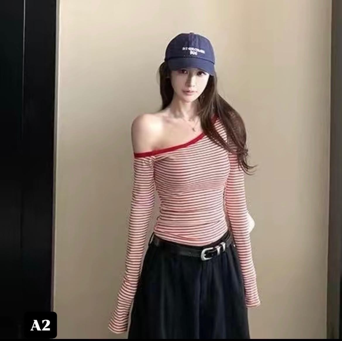 [BKK][PEG][131-150-0]TopChoice VaVa [In Stock] Women's Long Sleeve T-Shirt, Striped, Korean Style, Simple to Wear, Covers Shoulders Well... (BKK22)