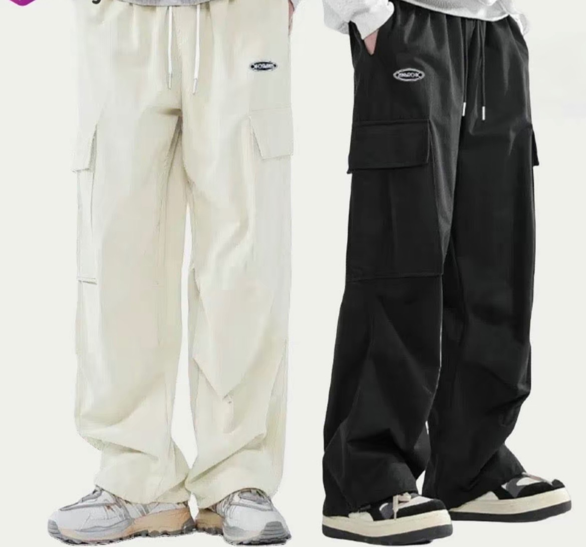 - “Upgrade your casual look with our trendy cargo pants in classic black and beige.”