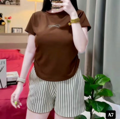 [BKK][PEG][165-200-0]Set of 2 Items, Bow Shirt+Printed Shorts, Smock Pattern, Clothing Women, Lady Set (BKK40)