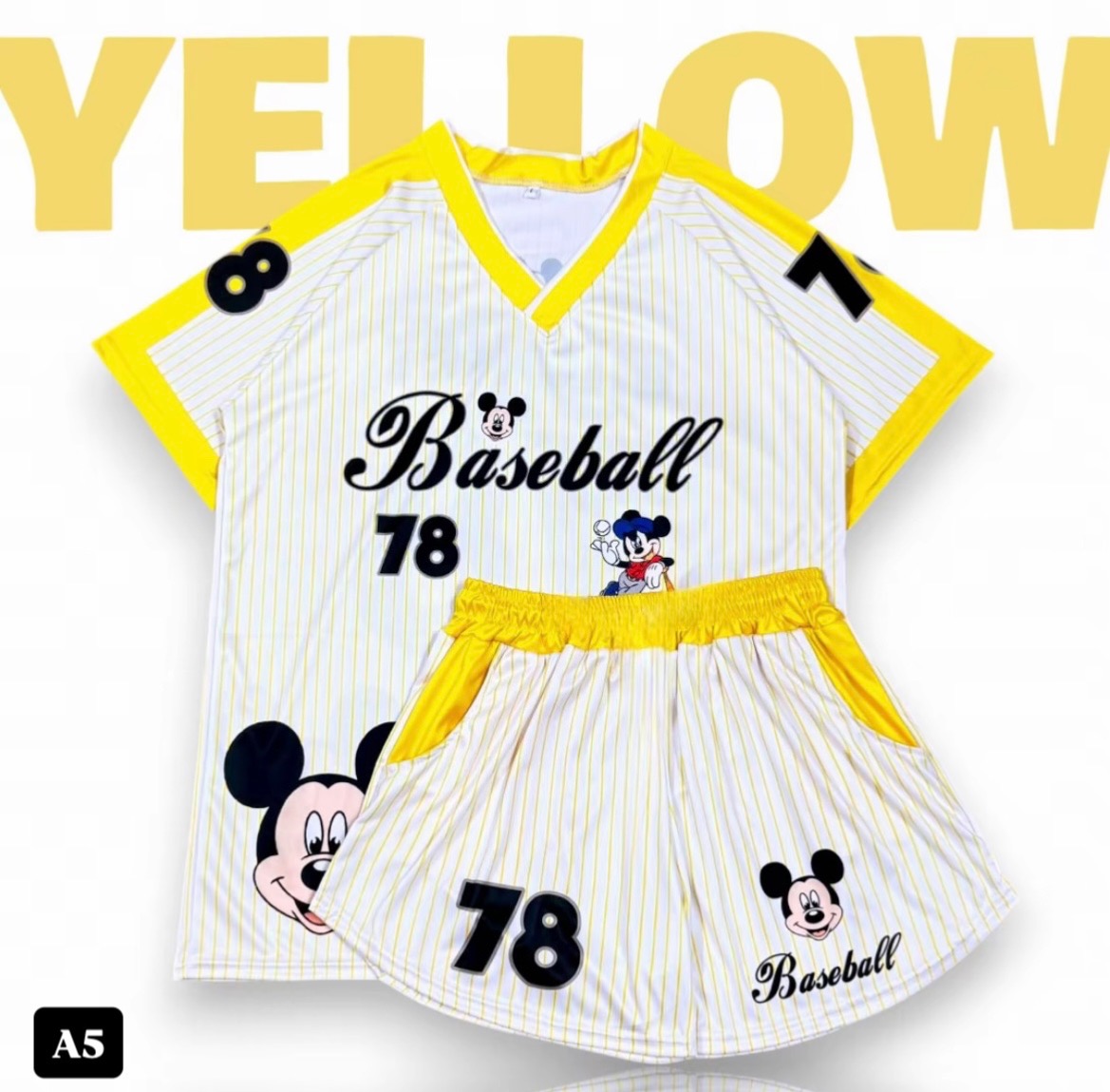 [BKK][PEG][155-200-0]Set Baseball 78 Striped Pattern Mickey 5 Colors Set Giifa KOVYWHITE Free Size/Plus Size (BKK47)